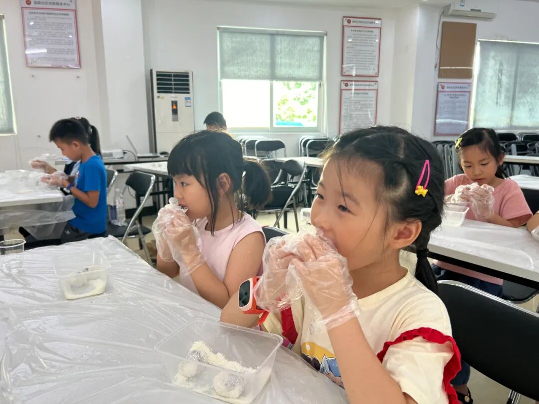在传统美食制作课堂上,小营员们化身为小小美食家,在街道工会和社区志愿者的指导下,亲手制作传统美食糯米糍,在动手制作的过程中,不仅体验了烘焙的乐趣,更在劳动中学会合作与分享。