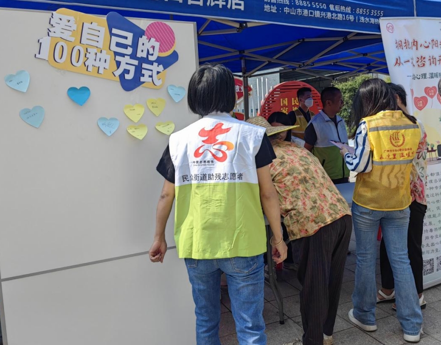 2024年10月10日,是第33个世界精神卫生日。为加强心理健康和精神卫生科普宣传,增强残疾人及社会大众的心理健康意识,10月9日上午,民众街道社区康园中心联动广州市社会心理公益协会、中山市知予心理咨询有限公司在民众街道新时代文明实践大楼开展以“共建共治共享·同心健心安心”为主题的宣传活动,吸引辖区50多人参与。 活动设置了减压游戏、心理健康知识宣传、心理咨询等摊位。在“情绪交换商店”与“爱自己100种方式”摊位中,参加者纷纷写上“今天很开心”“喜欢唱歌,唱歌让心情变好”等等便签,写好以后都粘贴到固定的白板上,并且可以用来交换一颗甜心的糖果和一张爱自己100种方式的卡片。便签上都是参与者对于未来的一些憧憬,还有自己当下的心情状态。通过这样的方式,让参与者学会表达自己的情绪以及寻找爱自己的方式。 随后,参与者便来到心理健康知识宣传摊位,并参与有奖问答,在此期间,工作人员还向参与者普及了心理健康知识。参与者说:“如果不是看了心理健康知识的内容,都不知道自己日常有这么多不良情绪,以后要多留意自己的情绪,并且每天要开开心心的。” 最后,部分参与者向现场专业的心理咨询师提出各自的心理困惑,心理咨询师耐心解答参与者在生活和工作中遇到的心理困惑,并分享了“减压小技巧”,提高她们对精神心理健康问题的正确认识和应对能力。 本次活动不仅提高了参与者对精神卫生、心理健康知识的认识,还积极营造了维护和促进心理健康和精神卫生的良好氛围。 |