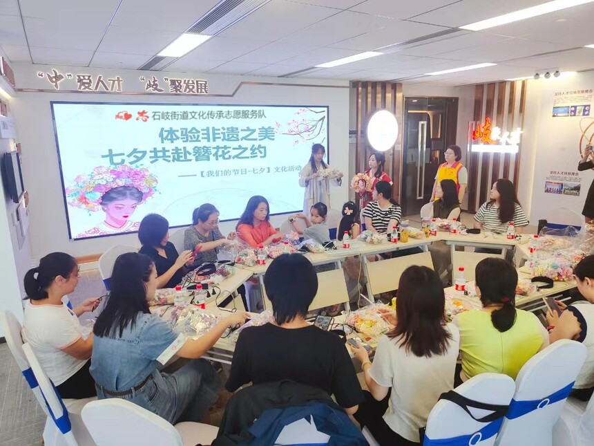 在七夕佳节到来之际,为弘扬中华优秀传统文化,让居民群众感受传统节日的美好意蕴,8月10日,石岐街道文化传承志愿服务队联合东明社区共同开展文化非遗之美,七夕共赴花簪之约活动,邀请辖区女青年一起体验簪花活动,感受非遗之美,共度七夕佳节。 志愿者首先向参加者介绍了非遗簪花的悠久历史和深厚文化底蕴,通过讲解,大家了解到簪花作为中国古代头饰的一种,不仅体现了古代人们对美的追求,还承载了丰富的民俗文化和历史记忆。 随后,进入互动体验环节。现场准备了各式各样的仿真花材和制作工具,供参加者挑选和使用,在志愿者的帮助下,大家纷纷动手制作起自己的簪花作品,从选择花材、剪裁花蕊,到装饰花蕊,每一个步骤都充满了挑战和乐趣,认真挑选材料,细心粘贴,每一个细节都力求完美,大家相互帮助、交流心得,现场洋溢着温馨和谐的气氛。 经过一个多小时的努力,一件件精美的簪花作品逐渐成型,有的簪花色彩斑斓,如同盛开的花朵;有的簪花简约大方,透露出一种别样的美,大家纷纷展示自己的簪花作品,分享制作过程中的心得和感悟。最后,大家手持簪花,一起合影留念。 |