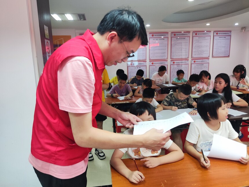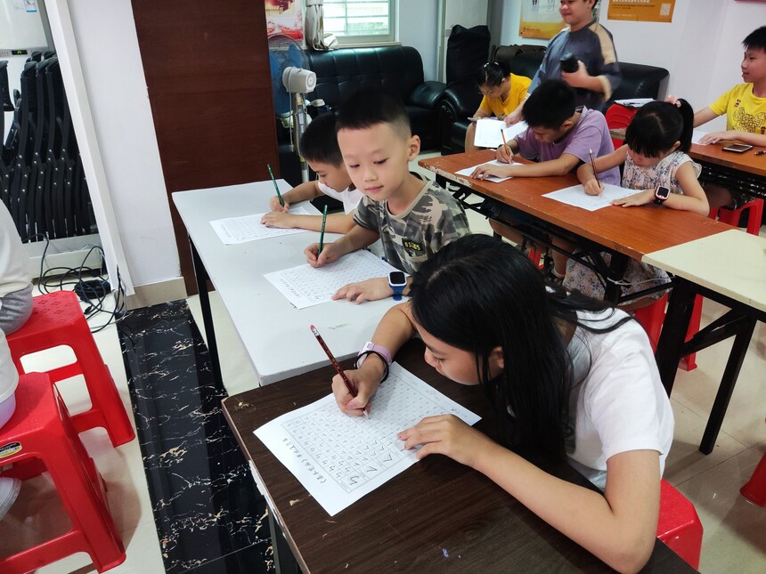 为增强学生写规范字、用规范字的意识、养成良好的书写习惯,全面提升青少年书写能力和文化素养。7月25日,石岐书香成长志愿服务队联合莲兴社区共同举行了“翰墨飘香 笔舞幸福”青少年暑假书法活动。 在课堂上,学生跟着志愿者老师先观察字的结构和写法,跟着老师一笔一画习“淘”“洼”“葡”“萄”“卵”“稻”的写法。在老师的悉心指导下,学生不仅掌握了正确的写字姿势和笔画点位,还学会了如何运用笔墨表达情感和思想。看,学生们坐姿端正,笔走龙蛇,一笔一划都显得那么认真而有力。笔尖轻触纸张摩擦出来的“沙沙”声,成了会场里里最美妙的旋律。 志愿者老师通过梳理练习中出现的问题,引导参加者运用“裙不落地”“看左写右”“右上竖写高”等书写技巧,将字写得更加规范、美观。大家触类旁通从会写一个字到会写一类字。瞧,他们屏息凝神,以铿锵有力的笔触书写出端庄工整的字体,不仅展示了个人的书写造诣,更体现了对优秀传统文化的尊重与理解。 写端端正正汉字,每一横,都是担当;每一竖,都有成长;每一捺,都聚力量;每一点,都含希望。习字无止境,接下来,石岐书香成长志愿服务队将持之以恒,继续开展更多形式多样的书法公益活动,让书法打造石岐街道亮丽的精神底色。 |