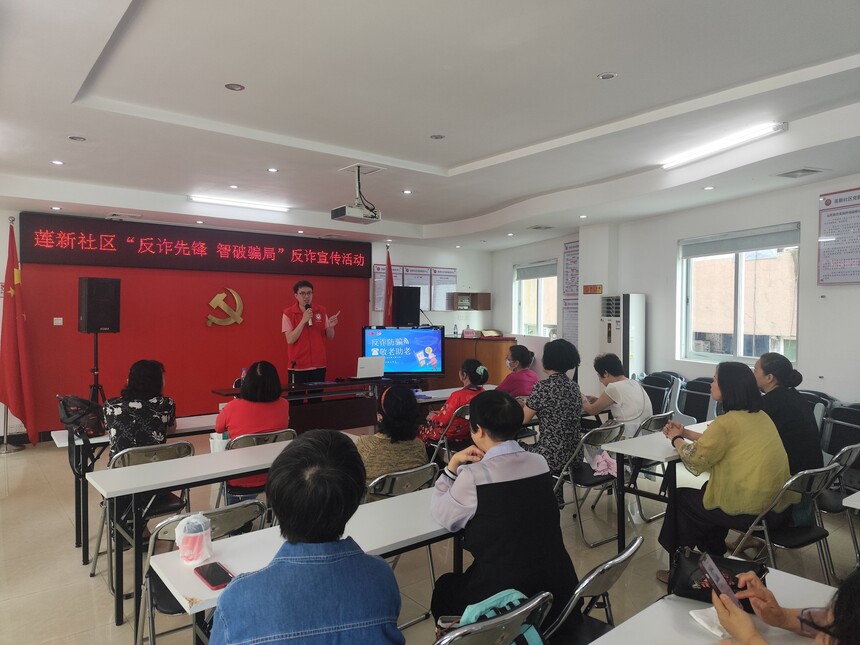 为提高年人的识骗防骗能力,守护好他们的“养老钱”,7月16日上午,石岐街道防诈骗志愿队联合莲新社区开展“反诈先锋 智破骗局”反诈宣传活动,近30名长者参加活动。 活动中,讲师结合身边典型案例,通过PPT演示,深入浅出的讲解了老年人在日常生活中常遇到的涉及理财、养老、冒充公检法等诈骗形式,尤其是“杀猪盘”“刷单诈骗”等新型诈骗的套路及防诈骗方法,叮嘱老同志要谨防保健品、投资养老、养老银行等各种骗局,不要轻信高额回报,在动钱用钱的时候,多向子女征求意见。特别提醒老年人要正确使用手机,不要随意添加不明对象的微信,做好个人信息保密,不要随意给陌生人汇款,自觉抵制诱惑,避免上当受骗,安享幸福晚年! 会后,讲师向老人们发放了反诈宣传手册,并帮他们下载并指导使用“国家反诈APP”。老同志们纷纷表示,此次讲座通俗易懂,使人受益匪浅,既增强了老年人的防诈骗意识,又懂得了在日常生活中如何运用法律武器来维护自身的合法权益。  |