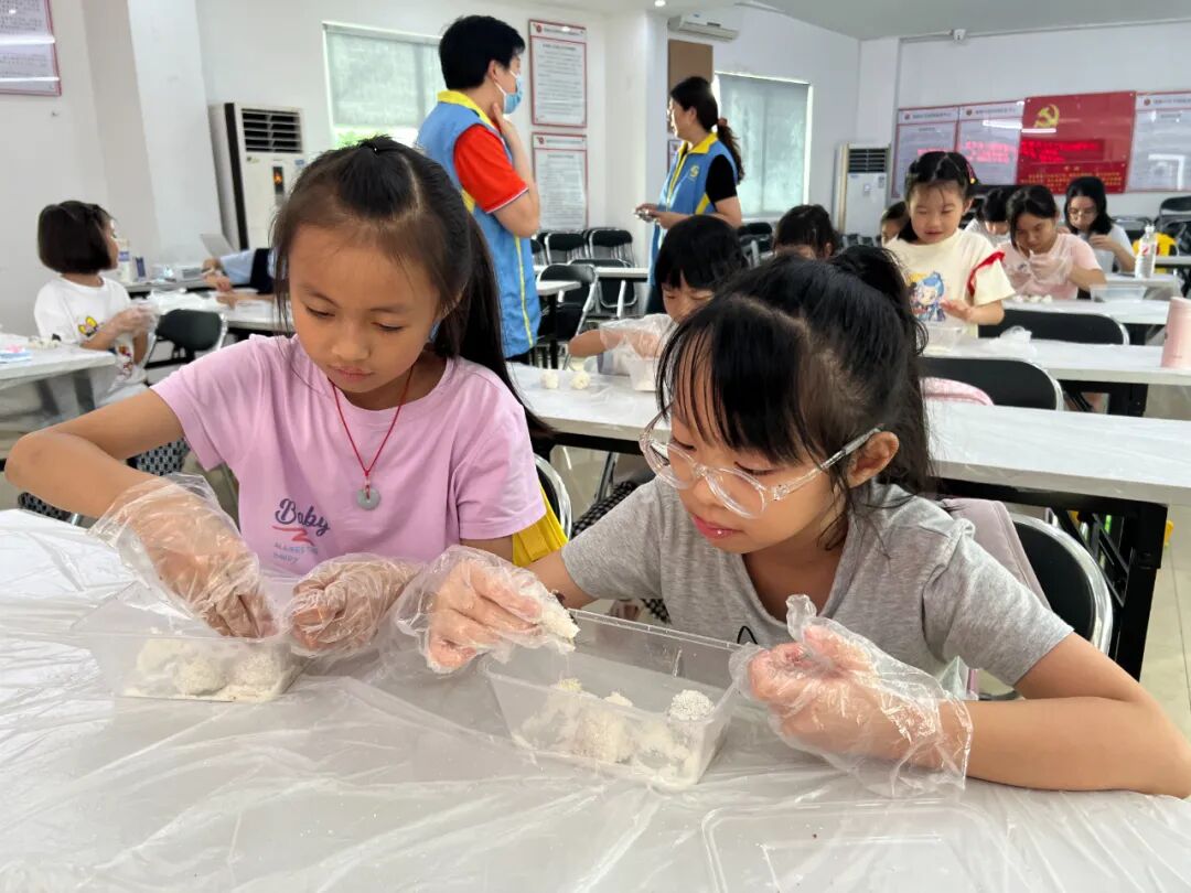 在传统美食制作课堂上,小营员们化身为小小美食家,在街道工会和社区志愿者的指导下,亲手制作传统美食糯米糍,在动手制作的过程中,不仅体验了烘焙的乐趣,更在劳动中学会合作与分享。