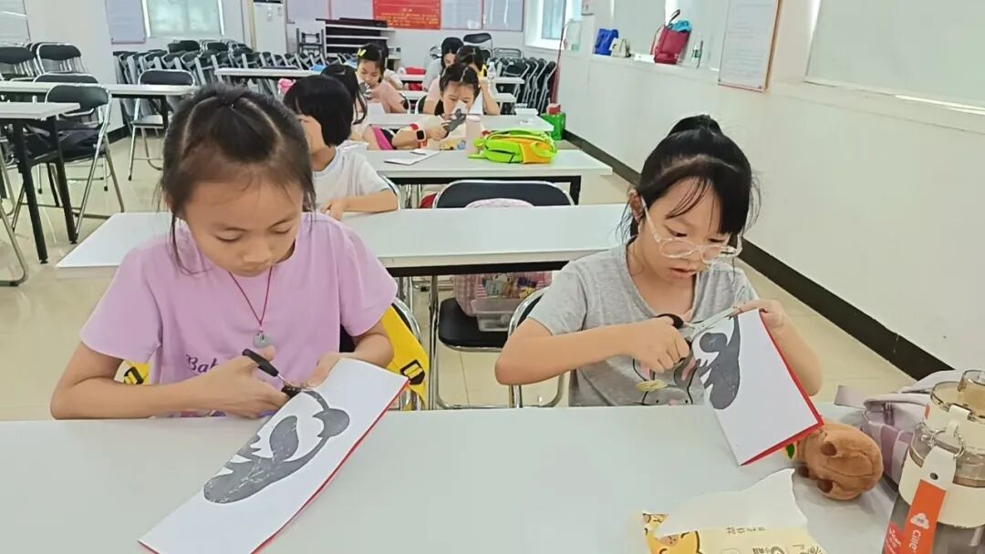 手工制作,传递环保理念 依托社区党群服务中心,本次夏令营开展了植物拓染、手工剪纸、羊毛毡戳戳乐、冰箱贴DIY、传统木工榫卯板凳制作等一系列活动,将手工制作与“变废为宝”的环保理念深度融合,引导小营员们发挥奇思妙想,利用落叶、花朵、废弃布料等素材,让闲置旧物在“旧物新生” 中焕发新颜,推动青少年儿童在巧手创作中感受亲身制作的独特乐趣,度过充实而有趣的假期。