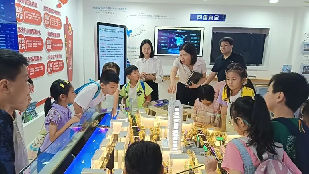 实地参观,感受科技魅力 在“入镇下村”结对单位中国电信股份有限公司中山分公司的帮助下,本次夏令营以“特色课堂+实地研学”的方式,特别开展行业党组织文化场地、“互联网+基地”展示厅实地参观活动,向小营员们展现了5G技术在城市建设中的落地场景,并通过VR技术,在展示厅的互动游戏、实践任务中亲身体验了5G、云网络等数字化产品应用场景,感受科技生活带来的高效与便捷。
